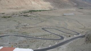 We continued way long towards rocky coned landscapes and arched natural gateway, just before Pang. Pang was a usual stop for lunch, with an array of eateries with tables in the open. Once done, we moved ahead and crossed beautiful Lachulungla Pass. Zig zag road called Ghatta Loops comprising 21 hairpin bends added great excitement as we gained height and peered down. We clicked a few snaps at Nakeela Pass and hurried to reach Sarchu, a vast camping ground, with colonies of tents pitched on flat grassy valley.